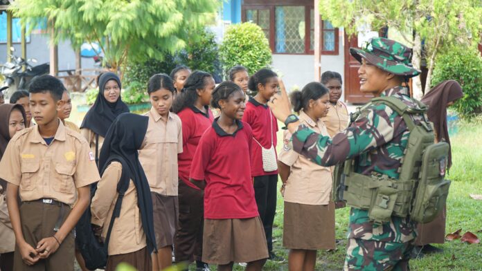 JDNews.co.id, Keerom – Dalam rangka membentuk karakter generasi muda yang tangguh, Satgas Yonif 131/BRS melaksanakan pelatihan Peraturan Baris Berbaris (PBB) untuk siswa-siswi SMPN 5 Arso di Kampung Wonorejo, Distrik Mannem, Kabupaten Keerom, Papua, pada Jumat (18/10/2024). Pelatihan ini bertujuan menanamkan kedisiplinan, tanggung jawab, dan kerja sama dalam tim.