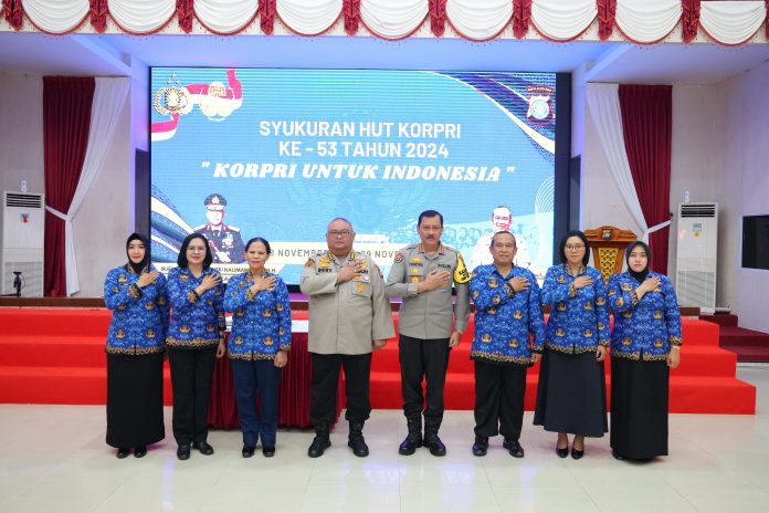 JDNews.com, Batam – Polda Kepri mengadakan syukuran untuk memperingati Hari Ulang Tahun (HUT) Korps Pegawai Republik Indonesia (KORPRI) yang ke-53. Acara berlangsung khidmat di Ruang GLK Polda Kepri pada Sabtu (30/11/2024) dan dihadiri oleh pejabat penting termasuk Karo SDM Polda Kepri Kombes. Pol. Danang Beny K., S.I.K., M.H., Kabidhumas Kombes. Pol. Zahwani Pandra Arsyad, S.H., M.Si., Ketua KORPRI Pembina M. Sukisman, S.Sos.I, M.Si., serta anak-anak dari Panti Asuhan “5 Roti dan 2 Ikan.”