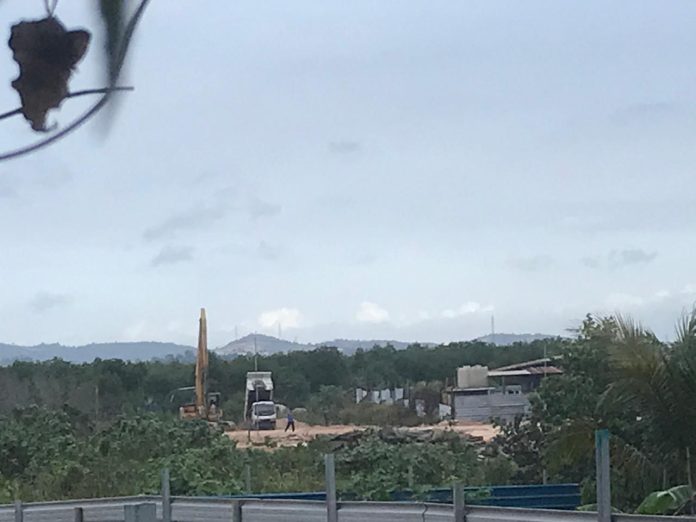 Area yang diduga merupakan kawasan mangrove perlahan ditimbun, mengubah bentang alam tanpa kejelasan legalitas. Tidak ditemukan papan proyek maupun informasi perizinan, memperkuat dugaan bahwa aktivitas tersebut berjalan di luar koridor hukum.