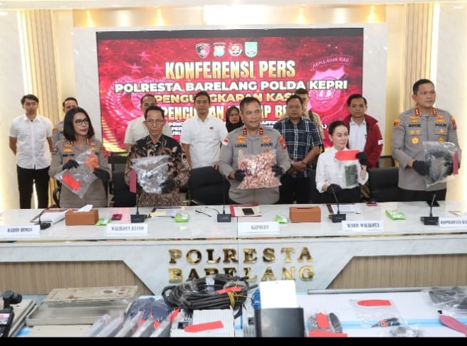 Kegiatan tersebut dilaksanakan di Aula Wicaksana Laghawa Lantai 2 Polresta Barelang, dipimpin oleh Kapolda Kepulauan Riau Irjen Pol Asep Safrudin, S.I.K., M.H., serta dihadiri oleh Walikota Batam Dr. H. Amsakar Achmad, S.Sos., M.Si., Wakil Walikota Batam Li Claudia Chandra, didampingi Kapolresta Barelang Kombes Pol Anggoro Wicaksono, S.H., S.I.K., M.H., Kabid Humas Polda Kepulauan Riau Kombes Pol Dr. Nona Pricillia Ohei, S.I.K., S.H., M.H., Dirreskrimsus Polda Kepulauan Riau Kombes Pol Silvester Mangombo Marusaha Simamora, S.I.K., M.H., Dirreskrimum Polda Kepualauan Riau Ronni Bonic, S.H., S.I.K., M.H. Dirintelkam Polda Kepulauan Riau Agung Budi Leksono, S.I.K., S.H., M.Pd. serta Kasat Reskrim Polresta Barelang Kompol M. Debby Tri Andrestian, S.I.K., M.H., Kamis (02/04/2026).
