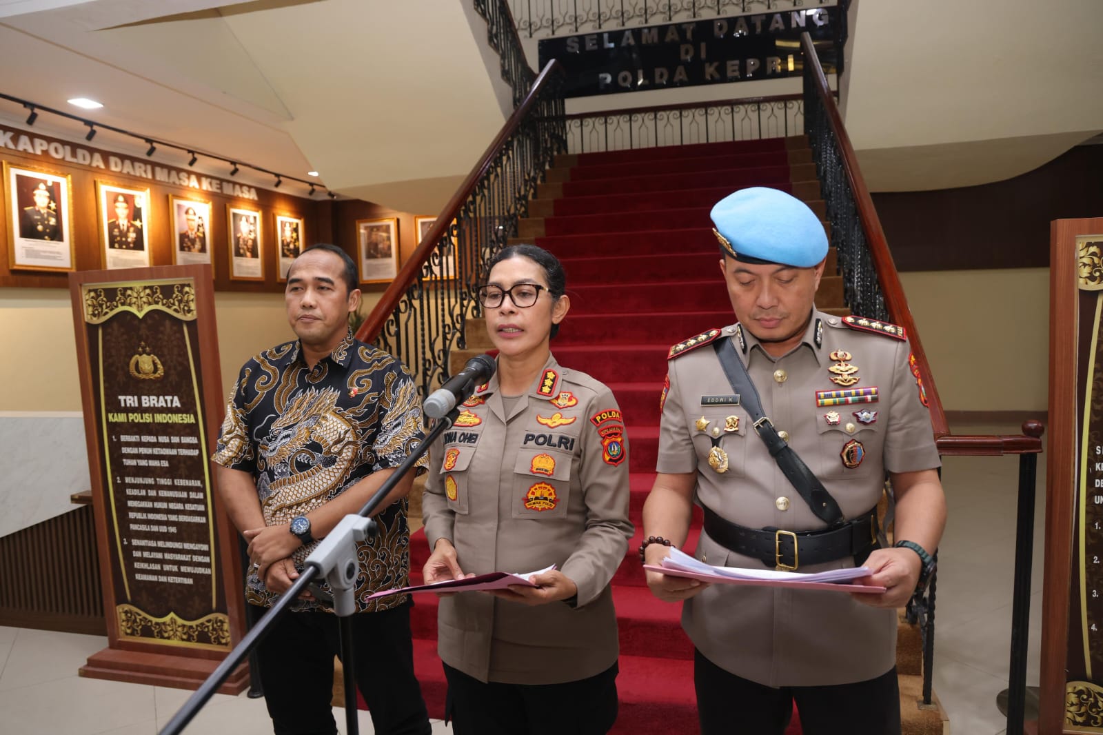 Keterangan tersebut disampaikan Kabid Humas Polda Kepri Kombes Pol. Dr. Nona Pricillia Ohei, S.I.K., S.H., M.H., didampingi Dirreskrimum Polda Kepri Kombes Pol. Ronni Bonic, S.H., S.I.K., M.H., serta Kabid Propam Polda Kepri Kombes Pol. Eddwi Kurniyanto, S.H., S.I.K., M.H., dalam doorstop di Lobi Polda Kepri, Jumat malam.
